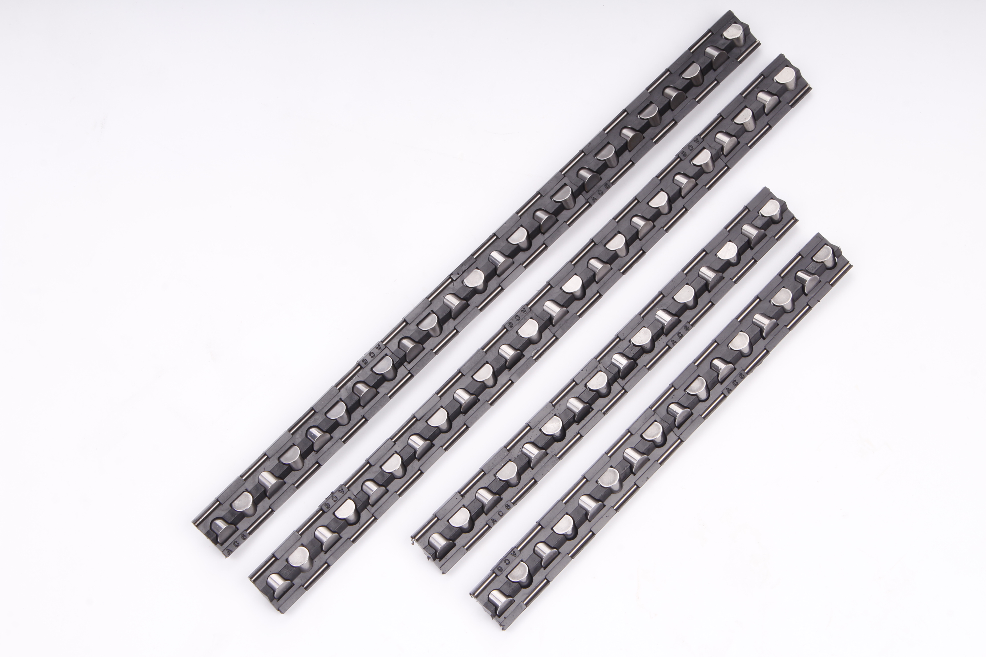 交叉導軌專用滾子引導保持架具有鮮明的適配性優(yōu)勢,核心功能集中體現(xiàn)在三個方面。其一,精準引導與定位,通過兜孔的限位作用,使?jié)L子始終保持90度正交排列,貼合V型滾道滾動,確保導軌運動軌跡精準,有效補償安裝面的輕微誤差,為導軌的高精度運行奠定基礎(chǔ)。其二,隔離防磨,將密集排列的滾子相互分隔,避免滾子間直接接觸、摩擦產(chǎn)生磨損和噪音,同時減少滾子與導軌滾道的局部過度磨損,延長整個導軌系統(tǒng)的使用壽命。其三,載荷均勻傳遞,通過框架結(jié)構(gòu)將滾子承受的載荷均勻分散,避免單個滾子受力過載,配合多滾柱協(xié)同工作,進一步提升交叉導軌的承載能力和結(jié)構(gòu)剛性。